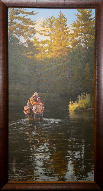 One of the most stunning and realistic paintings in the gallery is Rod Lawrence’s “A Guiding Hand”. This Giclee reproduction is #2 of 25 with an overall framed size of 28” x 52”. We present it today as a tribute to the AuSable River, the trout, and the anglers who have made our river one of the most famous trout destinations in North America.